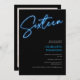 Cool neon blue script retro black photo Sweet 16 Invitation