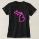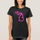 Celebrate your love of the Wolverine State with this t-shirt that features a magenta neon-light-like outline of the map of Michigan. Makes a great gift for Michiganders or anyone else who loves Michigan.