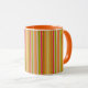 Cool mug featuring orange, green,yellow and hot pink vertical stripes pattern.