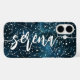 Add some intergalactic appeal to your phone with this cool outer space themed case featuring white outlined star constellations on a starry blue and teal galaxy background. Personalise with a name or monogram in white hand sketched cursive script lettering.