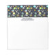 Notepad with a cute and colourful pattern with all kinds of outer space themed elements. Images include astronauts floating around in their white space suits. Stars and planets and cool little rocket ships, spaceships, and satellites. Fun and crazy design.