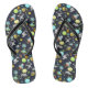 Flipflops with a cute and colourful pattern with all kinds of outer space themed elements. Images include astronauts floating around in their white space suits. Stars and planets and cool little rocket ships, spaceships, and satellites. Fun and crazy design.