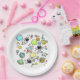 Paper plates with a cute and colourful pattern with all kinds of outer space themed elements. Images include astronauts floating around in their white space suits. Stars and planets and cool little rocket ships, spaceships, and satellites. Fun and crazy design.