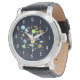 Watch with a cute and colourful pattern with all kinds of outer space themed elements. Images include astronauts floating around in their white space suits. Stars and planets and cool little rocket ships, spaceships, and satellites. Fun and crazy design.