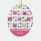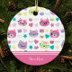 Cool Pastel Cats w Glasses Pattern, Pink Christmas Ceramic Ornament