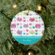 Cool Pastel Cats w Glasses Pattern, Teal Christmas Ceramic Ornament