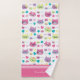 Add a cute touch to your bathroom with this adorable bath towel set that features a pattern of cool pastel cats wearing fun glasses. Each towel features pink, yellow, and purple cats wearing modern and retro glasses. There are also teal, pink, and yellow hearts and stars. Add your name at the bottom for a personal touch.