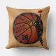 Super Cool Cool Personalised Basketball Senior Night Ideas, Basketball Pillows with 3 Text Boxes to type in each Player's NAME, NUMBER, TEAM NAME and or CHAMPIONSHIP or AWARD Text or Delete. Many sizes, shapes, cotton or polyester, zipper or not, etc. Shown is the large 20 x 20 inch Polyester Basketball Throw Pillows. Awesome Basketball Team Gifts with cool vintage basketball decor for boys and men.