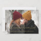 The full-sized image of the couple radiates love and anticipation, conveying the warmth and joy of uniting in matrimony during this festive season. This wedding save the date card is a perfect way to share the excitement of your engagement with friends and family.