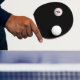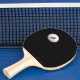 The image of a white pingpong ball personalised with name initial letter on a black (custom colour)