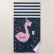 Cool Pink Flamingo Nautical Navy Blue Striped Beach Towel