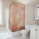 A cool pink tones shower curtain with a fun stained glass/mosaic pattern!