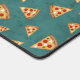 Cool and fun pizza slices pattern on rustic distressed green teal. Juicy illustrated pizza with crunchy crust, cheese, salami, champignon mushrooms, olives and a sprinkle of oregano.