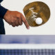 A stylish and modern design on a dark brown table-tennis-paddle with aged effects... to personalise with your own name and initials.