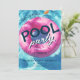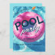Customisable pool party birthday invitation featuring a pink rubber ring and pool background background.