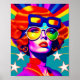 This pop art creation will take you on a journey to the groovy past, with a bold and stylish twist. A mesmerising, psychedelic girl, wearing a pair of cool sunglasses, pops against the dynamic stars and stripes background. The retro vibe, combined with the modern pop art design, makes this piece a must-have for those who appreciate bold and unique art.