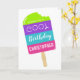 Send a special birthday greeting with this fun and cool popsicle birthday card. The name on the front can easily be personalised for that special person and the inside of the greeting card is blank for you to hand write a personal message.