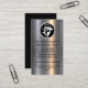 Classy cool private security business cards design created with a modern security emblem you can use on our cards and silver tone reflective looking background graphic that adds cool factor to the visiting card. Designed for a Private Detective, Security Guard, Personal Bodyguard, or cybersecurity.