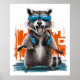 A stylish racoon rocking blue sunglasses and headphones, standing against an urban graffiti backdrop. This energetic and expressive illustration captures the rebellious and fun-loving spirit of the city nightlife. Perfect for fans of streetwear, music, and edgy animal designs.