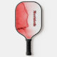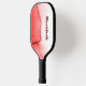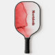 This pckleball paddle features a cool swirl of red against white, as if it's poured in an alcohol wash with multiple layers of colour. The colours are varied and subtle, and make for a distinct paddle to stand out on your court. Your name appears in the whitish area in a bold red typeface, outlined in black running up and down the right side. Make sure to type your name in the Personalise box.