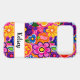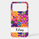 Make a retro statement with this groovy 70s inspired hippie flower power floral iphone 17 pro max phone case! It's modern and trendy with bright multi-coloured painted flowers. Make it uniquely yours with your name in a modern script font in black. It will look fabulous on your phone!