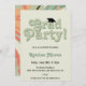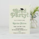 Retro graduation party invitation. Design features, Retro shadow font in shades of green with black graduation cap accent. Abstract painted chic summer palm tree pattern backing. Coordinating beige background colour on front and trendy template design for a truly unique and on trend Grad Party!