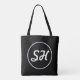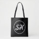 Cool Retro-Modern Style Monogram | Black & White Tote Bag