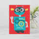 Adorable hand illustrated robot graphics make these second birthday invites cool and fun!