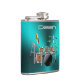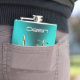 The flask itself is fine. It’s a cheap flask, obviously bought in bulk, however am prepared to overlook that. Given that it is a personalized item, I would have liked to have seen gift boxing instead of the generic packaging. Terrible printing, and/or quality. It’s a cheap, tacky vinyl. It is not cut straight and is also applied in a way that it is overhanging the bottom, causing the glue to catch on items and it will eventually roll and tear, damaging the wrap.