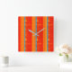 Cool Rustic Blue Orange Yellow Red Stripes Square Wall Clock