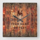 Cool faux Wood Rustic Clock Personalised with YOUR TEXT or Delete. Great for his Rustic Man Cave Wall Decor and practical. Type in his Monogram, Name, Man Cave or YOUR TEXT. Cool rustic Christmas gifts for men and women who love rustic decor. Great for your rustic lake cabin decor, rustic cottage decorating ideas and more. Do you have a garage man cave or rec room man cave? Printed wood boards weathered clock on Large or Small Round clock or Square (shown) Rustic Clocks.