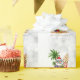 Whimsical Santa Claus, palm tree, pineapple on bokeh background make this a perfect Christmas or holiday greeting card for friends and family.