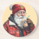 Cool Santa Drinking Iced Coffee Christmas Art Coaster