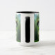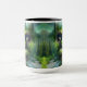 An illustration of Bigfoot in a cool double exposure with forest, river and mountains. Cool Sasquatch themed coffee cup.