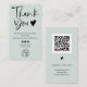 A cool simple and minimalist sage green business order thank you logo vertical layout. Add your social media. With an modern signature script font, all the colours are editable , add your logo and your QR code .