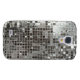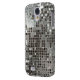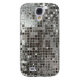 A cool silver sequins metallic look background pattern close up of a retro sparkling, shiny disco style mirror ball globe. This unique Samsung Galaxy mobile cell phone case is decorative, cool, and fun! Note that this fun design is not actually made with sequins or glitter but has the look of it.