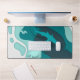 Cool Shark and Turtle Abstract Art Blue Desk Mat