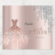 Elegant blue dress and silver glitter drips on a rose gold background.
