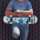 Cool skateboard with blue monster graphics