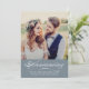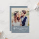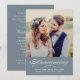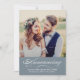 Share your marriage news with understated elegance and invite loved ones to your wedding reception with this slate calligraphy photo invitation. A cool blue-grey banner features "Announcing" in sweeping white script with names, date, and ceremony location. The back provides full reception details with venue, time, and RSVP contact information. Add your own photo and personalise every detail.