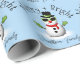 Cool Snowman Merry Bright Christmas Custom Family Wrapping Paper. Cute festive winter birthday celebration blue winter snowman pattern Gift Wrapping Supplies for kids. Illustration of a cool snowman with green sunglasses and gloves, red scarf, and black top hat.