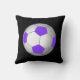 The back is the soccer / football throw pillow has a solid black background and purple and light grey soccer / football gifts for girls or change the COLORS for boys. Cool soccer bedroom decorating ideas and senior night soccer gift ideas. Choose size and fabric of the soccer throw pillows, 100% Cotton or Polyester in 16 inch square, as shown. CALL Linda for HELP and Changes: 239-949-9090.