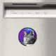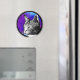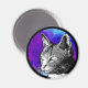 Add some fun flair to your refrigerator or school locker with this cute space cat magnet! It has a purple and blue space background with a large black and white cat's face in the foreground. Perfect for a cat lover or a lover of things silly and fun!