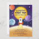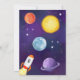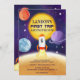 Celebrate your little astronaut's first orbit with our cool space-themed birthday invitations, featuring planets, rockets, and stars! Painted in watercolor in purple, orange, red and yellow.