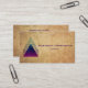 A cool sci-fi illustration with a grunge background. The background is an aged grungy antique brown colour. The illustration is composed of a big triangle filled with blue and purple outer space imagery and texture. This triangle is surrounded by several blueish purple triangle outlines which stack upward.