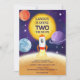 Celebrate your little astronaut's 2nd orbit with our cool space-themed birthday invitations, featuring planets, rockets, and stars! Painted in watercolor in purple, orange, red and yellow. Going two the moon!