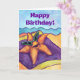 Fun Starfish Happy Birthday customisable greeting card features our colourful art of a cool orange starfish in sunglasses chilling on a purple and yellow beach towel with colourful textured backgrounds painted by our talented kid’s book illustrator, Traci Van Wagoner. Inside is blank you you can add your own message. This fun starfish artwork greeting card is a great way to send out your birthday greetings this summer. Anyone who loves summer, sunbathing, starfish, fun and bright colourful artwork will enjoy getting this in the mail.