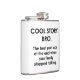 The flask itself is fine. It’s a cheap flask, obviously bought in bulk, however am prepared to overlook that. Given that it is a personalized item, I would have liked to have seen gift boxing instead of the generic packaging. Terrible printing, and/or quality. It’s a cheap, tacky vinyl. It is not cut straight and is also applied in a way that it is overhanging the bottom, causing the glue to catch on items and it will eventually roll and tear, damaging the wrap.
