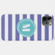 Pretty and trendy blue violet shade) and white striped pattern with your monogram inside an abstract aqua blue circle.