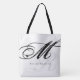 A stylish white tote bag with your name and initials monogrammed in a script font style